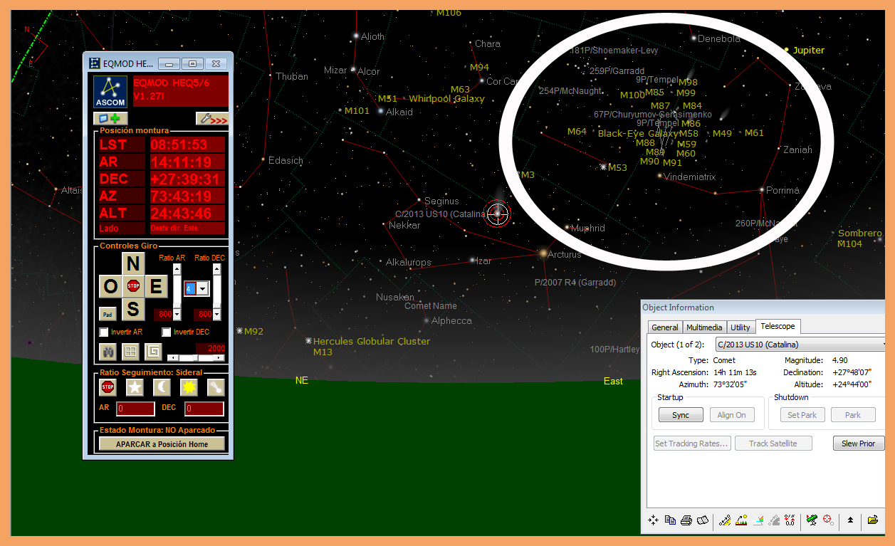 La noche de Catalina. Captura de pantalla del programa de maniobra del telescopio, The Sky 6, con ASCOM