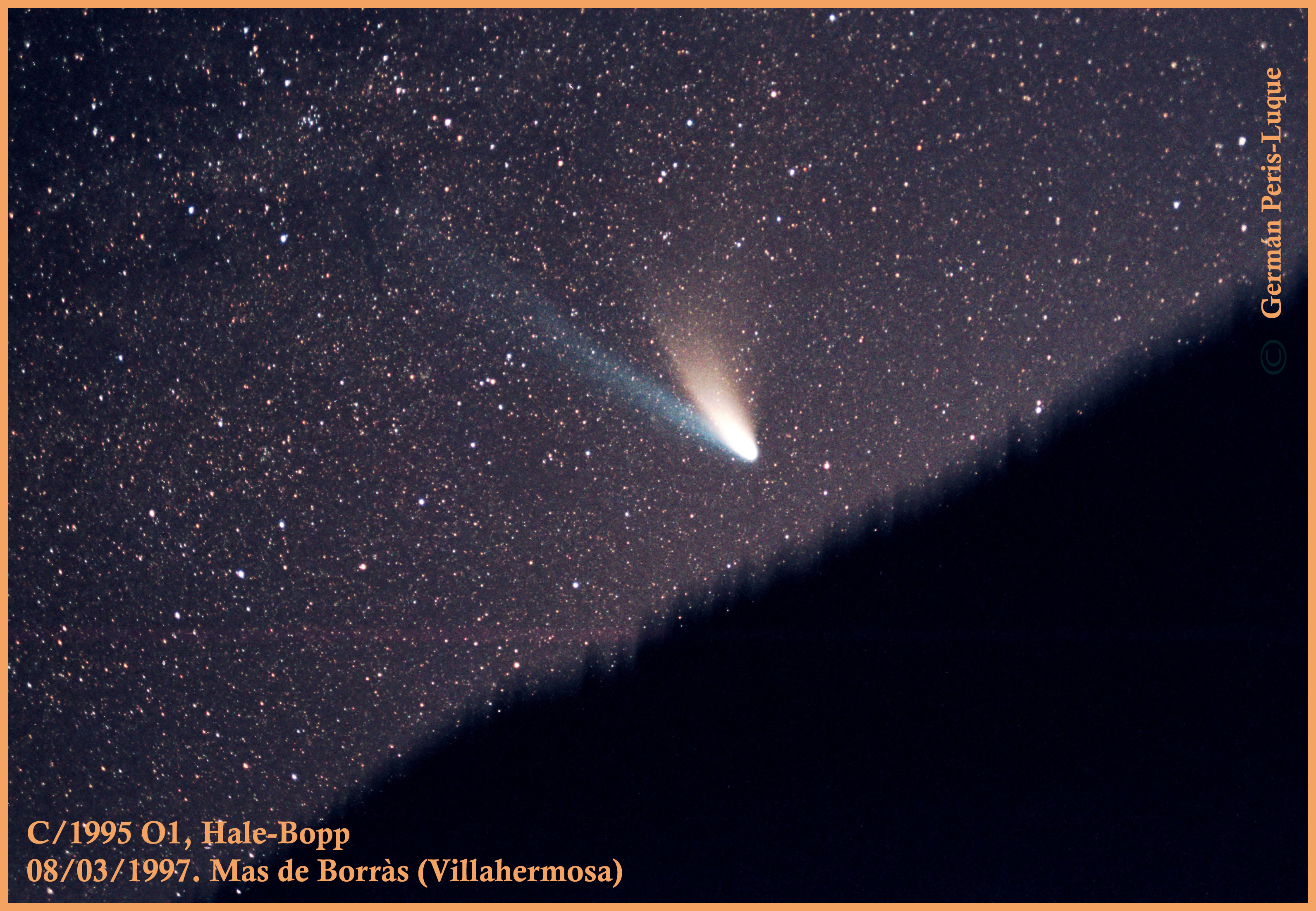 Dos de esas funciones, y como recompensa al triste y casi desapercibido paso del cometa Halley en 1986, fueron los pasos de dos cometas en 1996 y 1997: el C/1996 B2, Hyakutake y el C/1995 O1 Hale-Bopp. Eso sí fueron cometas espectaculares, de los que esperas ver uno, al menos, una vez en la vida. Fueron dos y en años seguidos.