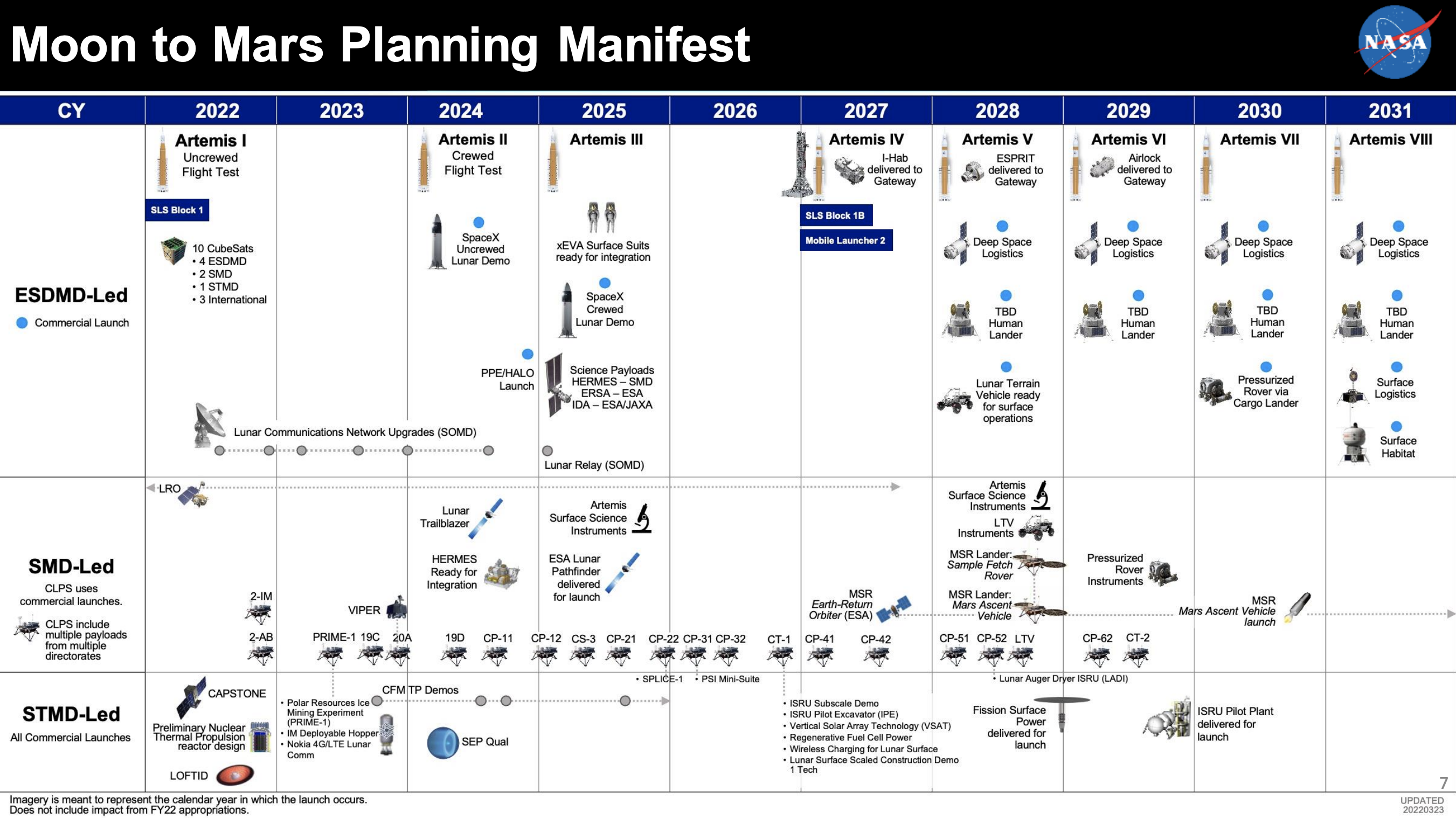 Hoja de ruta del programa Artemisa. Crédito: NASA