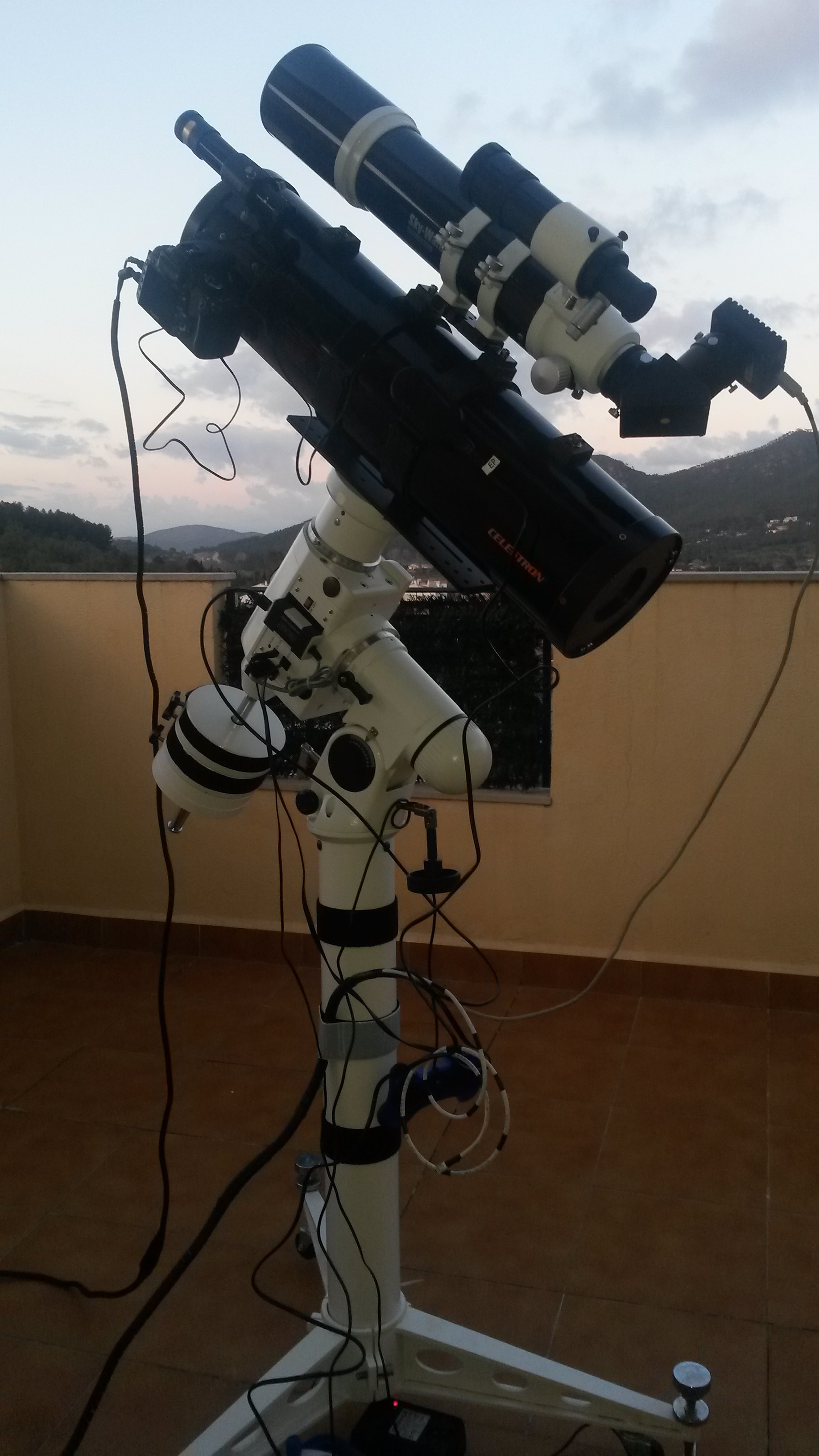 El proyecto se empezó a postergar y parecía casi un trabajo titánico para mis medios y mi tiempo libre y, con la llegada de la era digital y la invasión de luces que acompañaban a este tipo de práctica (ordenador, pantalla de la DSLR, baterías supletorias y cables, muchos cables), sentí que debía dejarlo por la astronomía que no había hecho durante muchos años por culpa de la astrofotografía: la astronomía observacional —con la cual me inicié en la astronomía—, disfrutando de la contemplación de cielo estrellado en oscuridad y buscando detalles en sutiles nebulosas, con mi viejo Newton de 15 cm o mi flamante Celestron Schmidt Cassegrain de 23 cm (C9.25), que llegó para quedarse a principios de los 2000.