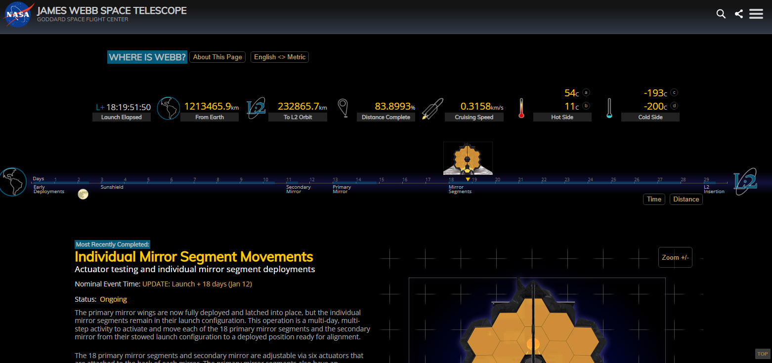 Captura de pantalla de la Web del James Webb Space Telescope (NASA), del pasado 13 de enero