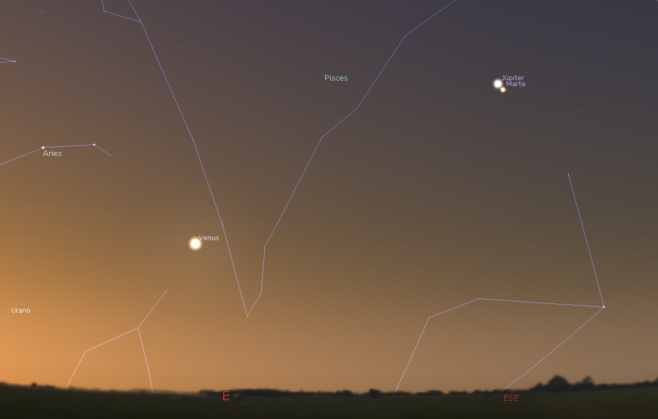 Captura con Stellarium de la madrugada del 28 de marzo antes de salir el Sol.